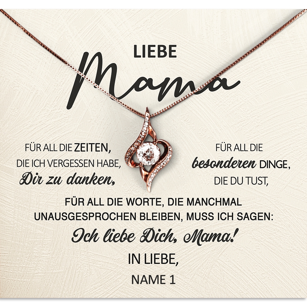 Deine Mama bedeutet Dir sehr viel und Du weißt nicht, wie Du Dich bei Ihr bedanken kannst? Mit einem persönlichen Geschenk von Juwelda wirst Du Deiner Mama ganz bestimmt ein Lächeln ins Gesicht zaubern. Wähle Dein Schmuckstück, such Dir ein Motiv Deiner Wahl aus und trage Deine Wunschnamen in das Personalisierungsfeld ein. Mit der Live-Vorschau kannst Du das Geschenk für Deine Mama ansehen und Änderungen vornehmen. Sobald Du mit Deiner Wahl zufrieden bist und Dein perfektes Geschenk gekauft hast, beginnen wir mit der Arbeit.