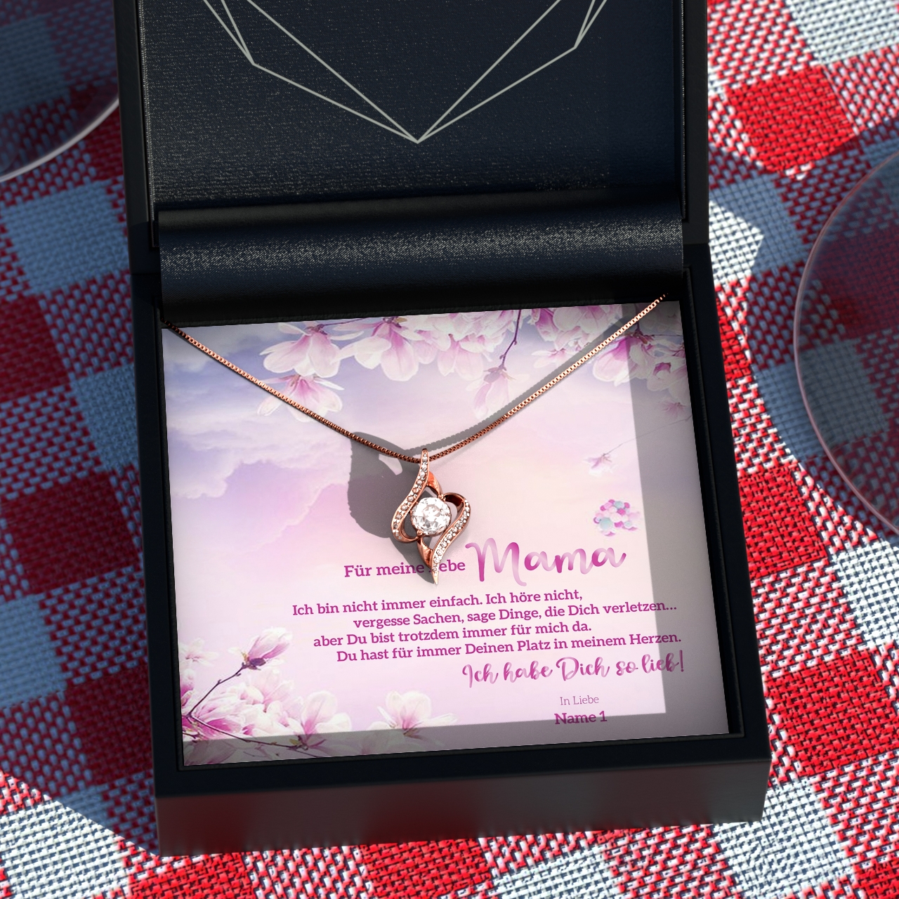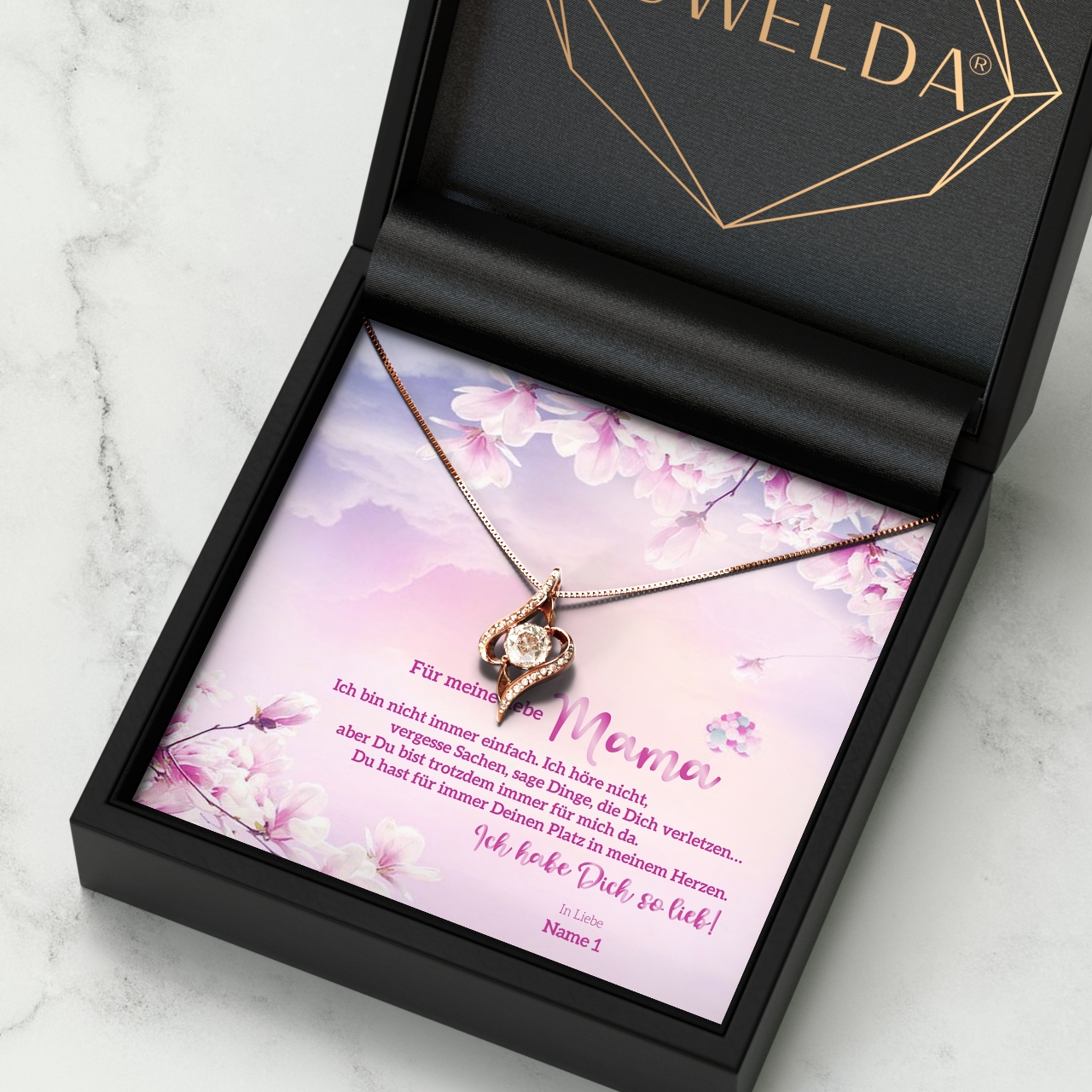 Möchtest Du Dein Geschenk sofort an Deine Mama überreichen? Kein Problem! Wir verpacken Dein Geschenk mit ganz viel Liebe in unserer kleinen Schmuckmanufaktur im Schwarzwald und liefern Dir Dein Paket innerhalb von 2-3 Werktagen. Deine Halskette wird mit der personalisierten Karte, der Schmuckbox aus Kunstleder und einer hochwertigen Geschenktasche verpackt. So kannst Du Dir sicher sein, dass dieses Geschenk Deiner Mama gefallen wird.