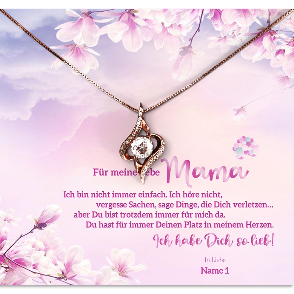 Die Liebe Deiner Mutter für Dich kennt keine Grenzen. Viel zu häufig vergessen wir diese Liebe zu erwidern. Möchtest Du Deiner Mama einmal „Danke“ sagen, für all die Momente, in denen Du es einfach vergessen hast? Dann ist unsere personalisierbare Karte „Kirschblüten“ genau die richtige Wahl für Dich! Ein wunderschönes Motiv mit rosa Blüten und einem leicht schimmernden Himmel. Du musst nur Deinen Spruch wählen und Deine Wunschnamen eintragen. Schon kannst Du Dir die Live-Vorschau anschauen und Dich von Deiner personalisierten Karte überzeugen.