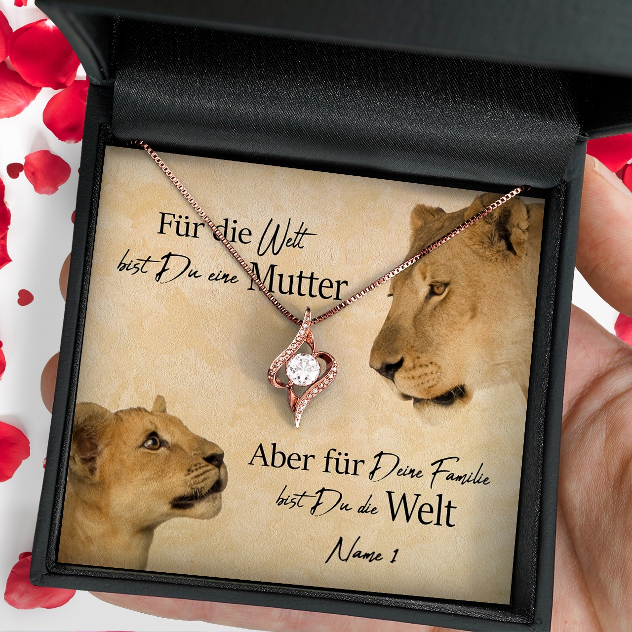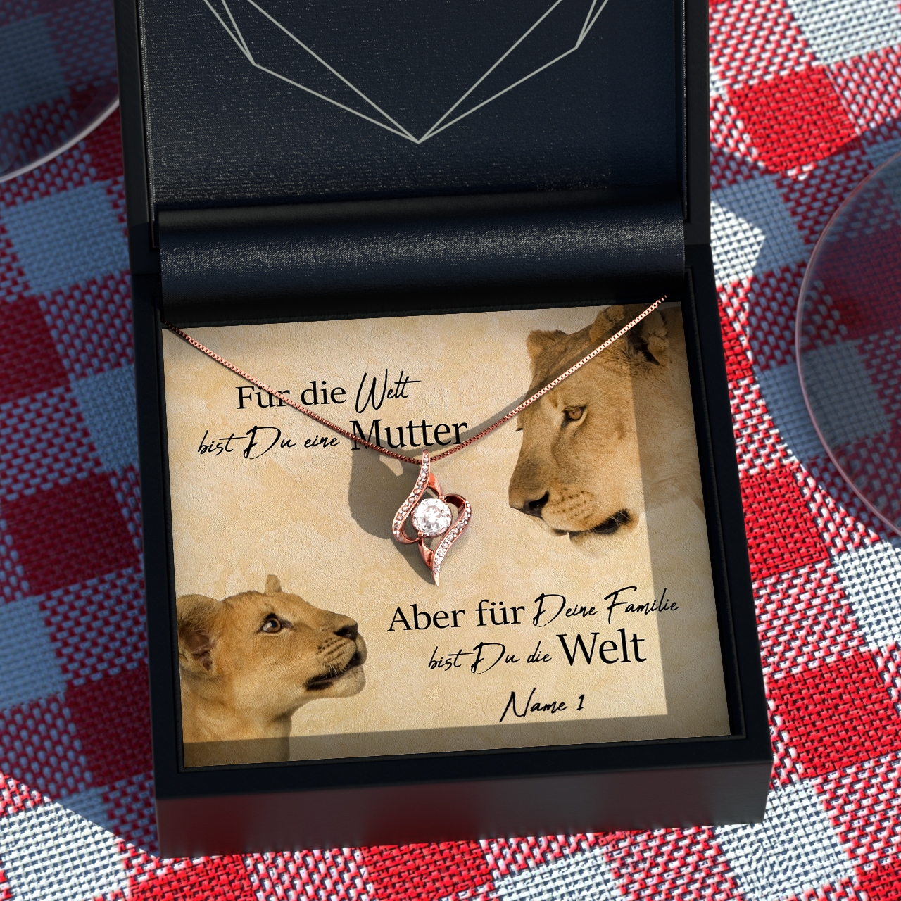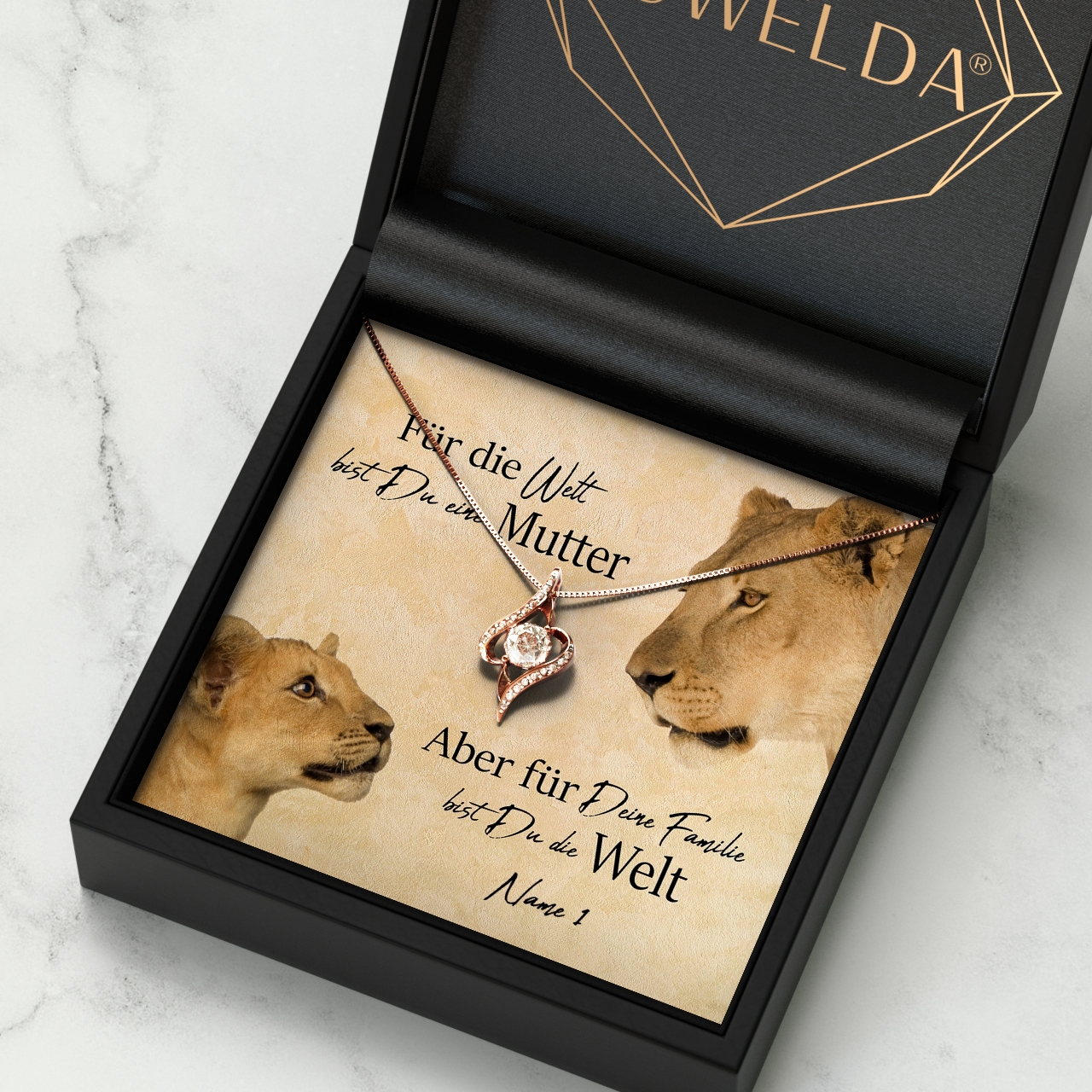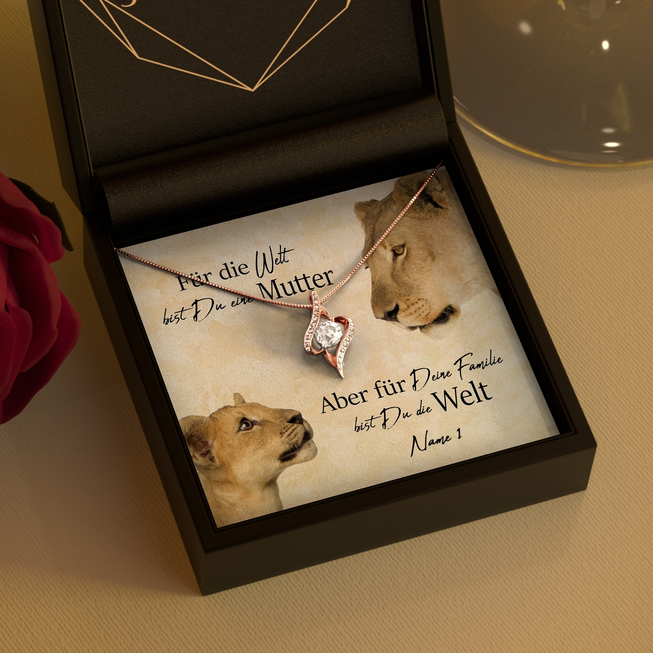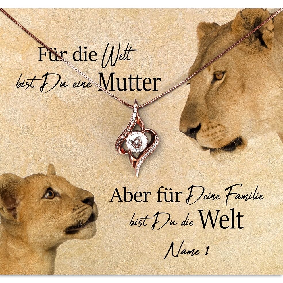 Deine Mutter ist immer an Deiner Seite? Sie ist Deine beste Freundin, Beschützerin und größte Unterstützerin zugleich? Mit unserer personalisierbaren Karte „Löwenmutter“ kannst Du dafür Danke sagen. Als Teil eines einmaligen Geschenksets ist die Karte der perfekte Weg, um Deinen Gefühlen Ausdruck zu verleihen – denn wir sagen unseren Müttern viel zu selten, wie wichtig sie für uns sind. Wähle ein Schmuckstück, das zu Deiner Mama passt und präsentiere es mit der Karte, die Deinen Namen zeigt.