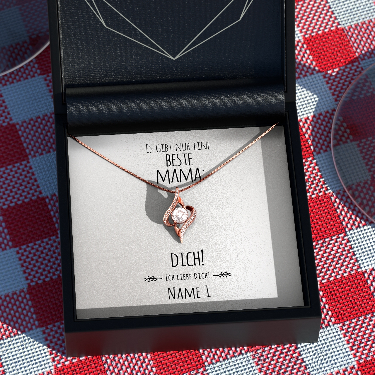 Zusammen mit der personalisierten Karte liefern wir Dir ein Schmuckstück aus echten 925 Sterling Silber und ein Schmucketui aus Kunstleder mit einer Samt-Innenverkleidung. Im handgepackten Paket befindet sich außerdem eine schöne Geschenktasche, mit der Du Dein individuelles Geschenk sofort an Deine Mama verschenken kannst.