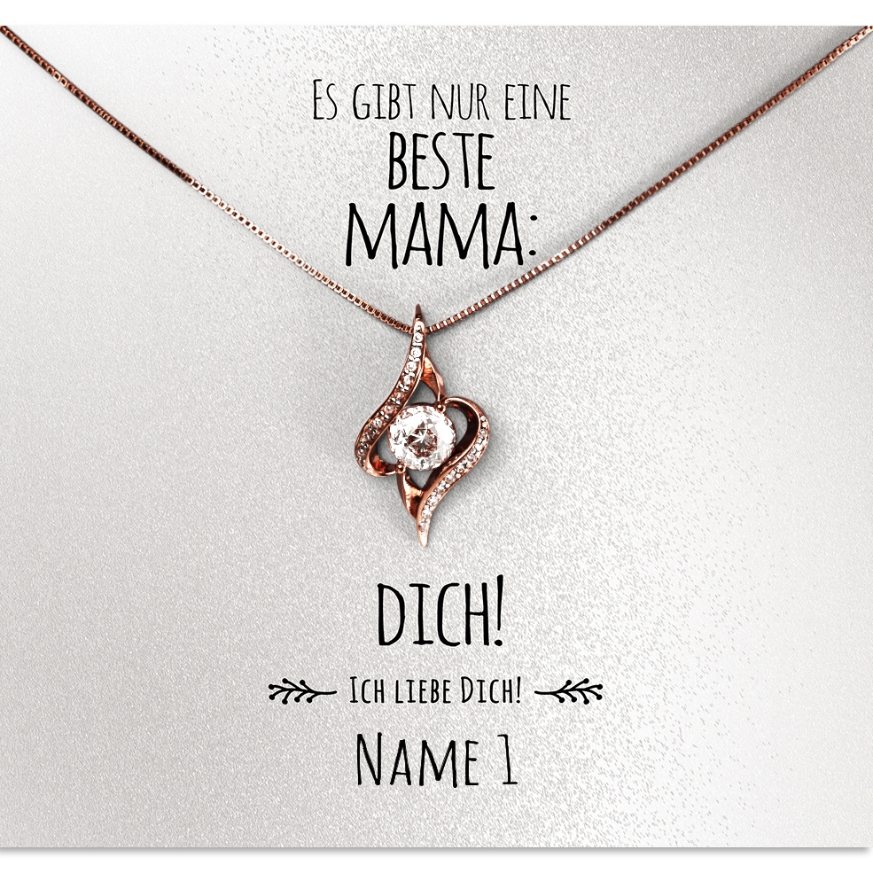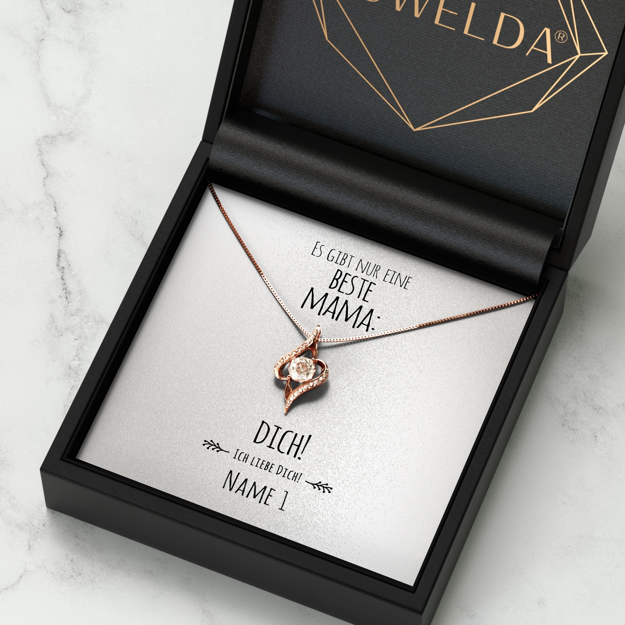 Wie sagt man seiner Mutter, dass sie die beste Mama auf der ganzen Welt ist? Viel zu oft wissen wir einfach nicht, was wir unserer Mutter schenken sollen. Kurz vor besonderen Anlässen wie dem Muttertag, dem Geburtstag oder Weihnachten ist die Panik wieder groß und die Geschenkideen nicht vorhanden. Wir haben die Lösung für dieses Problem. Mit dem Geschenk Set von Juwelda kannst Du Deine Wertschätzung ausdrücken und Deine Liebe zu Deiner Mutter zeigen. Unsere personalisierbare Karte „Meine Mama“ besticht durch das schlichte Design und dem kurzen und treffenden Spruch. Um die Karte mit Deinem Namen zu personalisieren, musst Du nur das entsprechende Personalisierungsfeld ausfüllen. Möchtest Du das Geschenk mit Deinen Geschwistern verschenken? In diesem Fall hast Du die Möglichkeit, bis zu sieben Namen auf der Karte verewigen zu lassen. In wenigen Minuten kannst Du so das perfekte Geschenk von Dir und Deinen Geschwistern erstellen.
