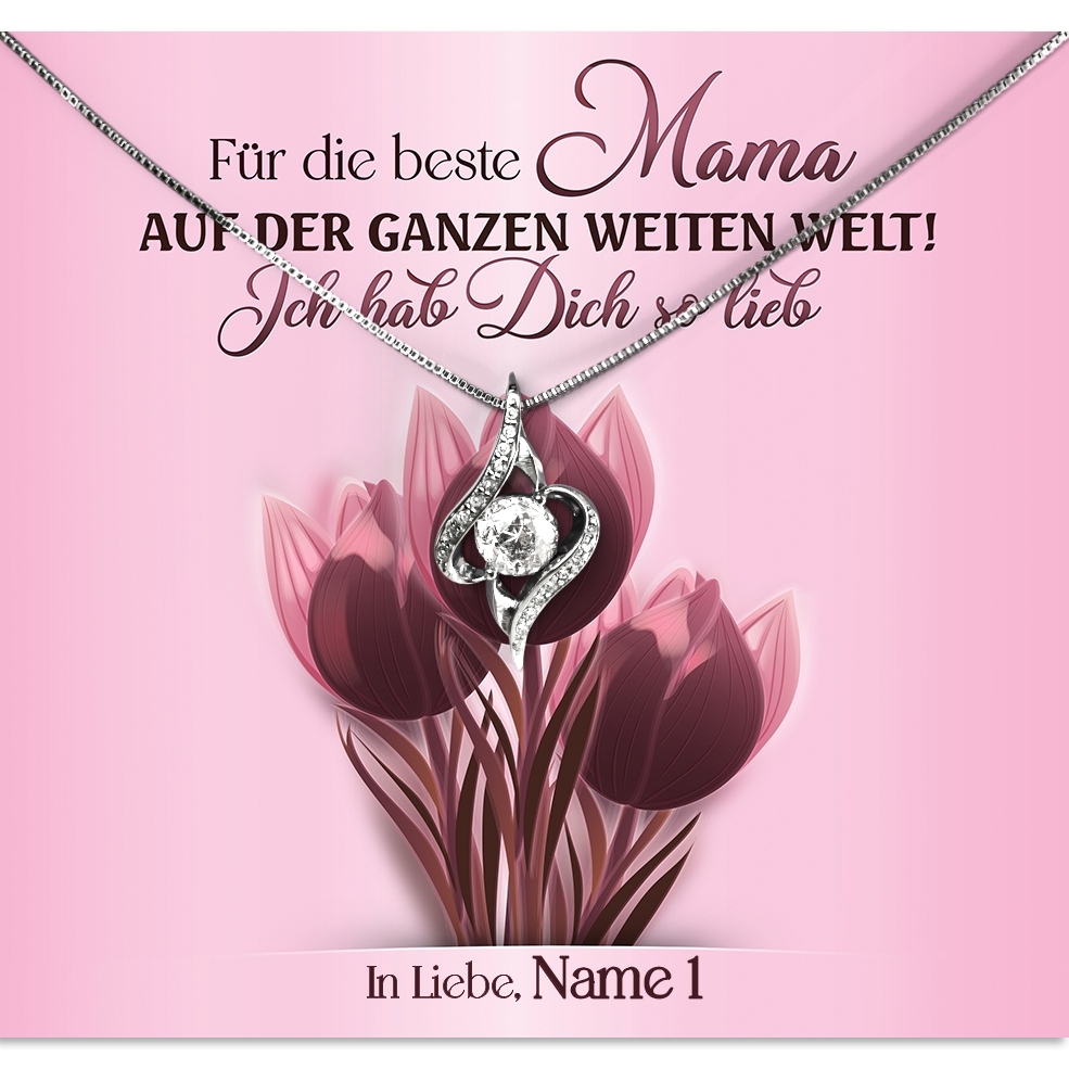 Deine Mutter ist durch ihre Liebe einer der wichtigsten Menschen in Deinem Leben. Jetzt ist es an der Zeit, einfach mal “Danke” zu sagen. Danke für jede Minute ihres Lebens, in der sie sich um Dich gekümmert hat und danke für jeden Moment, den Du mit ihr bisher verbringen konntest. Und wie könntest Du Dich liebevoller bedanken als mit einem einzigartigen Set aus personalisierter Grußkarte, wunderschönem Schmuckstück und einer edlen Schmuckbox?