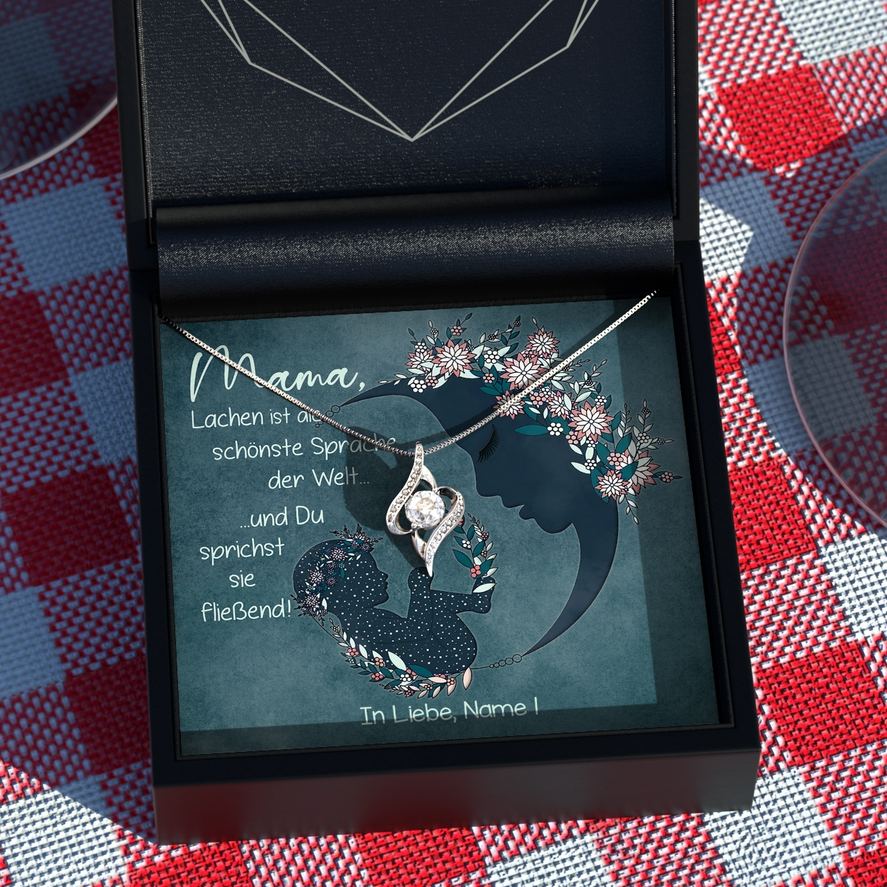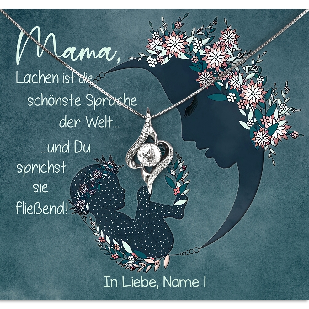 Deine Mama ist einfach der wunderbarste Mensch? Du möchtest Dich endlich dafür bedanken, dass sie immer an Deiner Seite ist und sich in guten wie schlechten Zeiten um Dich kümmert? Finde in unserem Schmucksortiment ein Juwel, welches ein Leuchten in die Augen Deiner Mama zaubern wird. Anschließend kannst Du die Karte „Schönste Sprache der Welt“ mit Deinem Namen personalisieren und das Set voller Freude überreichen. Wenn Ihr mehrere Geschwister seid, ist auch Platz für weitere Namen auf der Karte. In der Live-Vorschau kannst Du sehen, wie das finale Produkt aussehen wird.