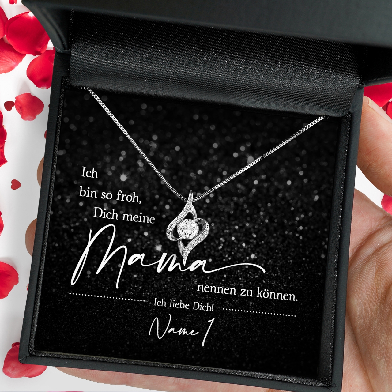 In dem Geschenkset ist eine Halskette aus 925 Sterling Silber, Deine personalisierte Karte und eine hochwertige Schmuckbox aus Kunstleder enthalten. Zusätzlich erhältst Du eine edle Geschenktasche, damit Du Dein Geschenk sofort an Deine Mama verschenken kannst. Wir verpacken Dein persönliches Geschenk von Hand in unserer kleinen Schmuckmanufaktur im schönen Westerwald.