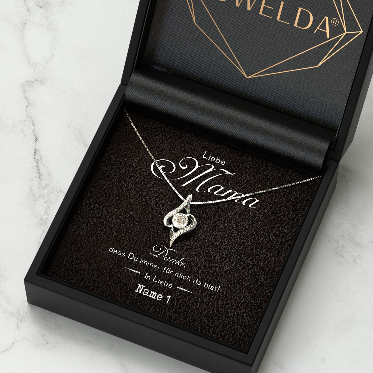 Die Bindung zu seiner Mutter ist so wichtig wie Essen und Schlafen. Im Kindesalter hat sich diese Bindung durch die regelmäßigen Fernsehabende mit Kuscheleinheiten gezeigt, im Teenageralter durch sehr persönliche Gespräche und im Erwachsenenalter durch die endlosen Ratschläge Deiner Mutter. Um auszudrücken, wie wichtig Dir die Bindung zu Deiner Mama ist, eignet sich das Geschenkset von Juwelda. Du erhältst eine schöne Halskette aus 925 Sterling Silber und die personalisierte Karte „Unsere Bindung“ mit einem emotionalen Spruch, der Deiner Mutter zeigt, wie wichtig sie Dir ist.