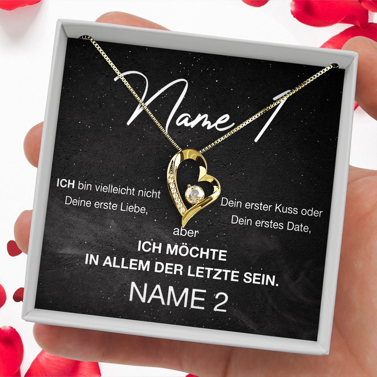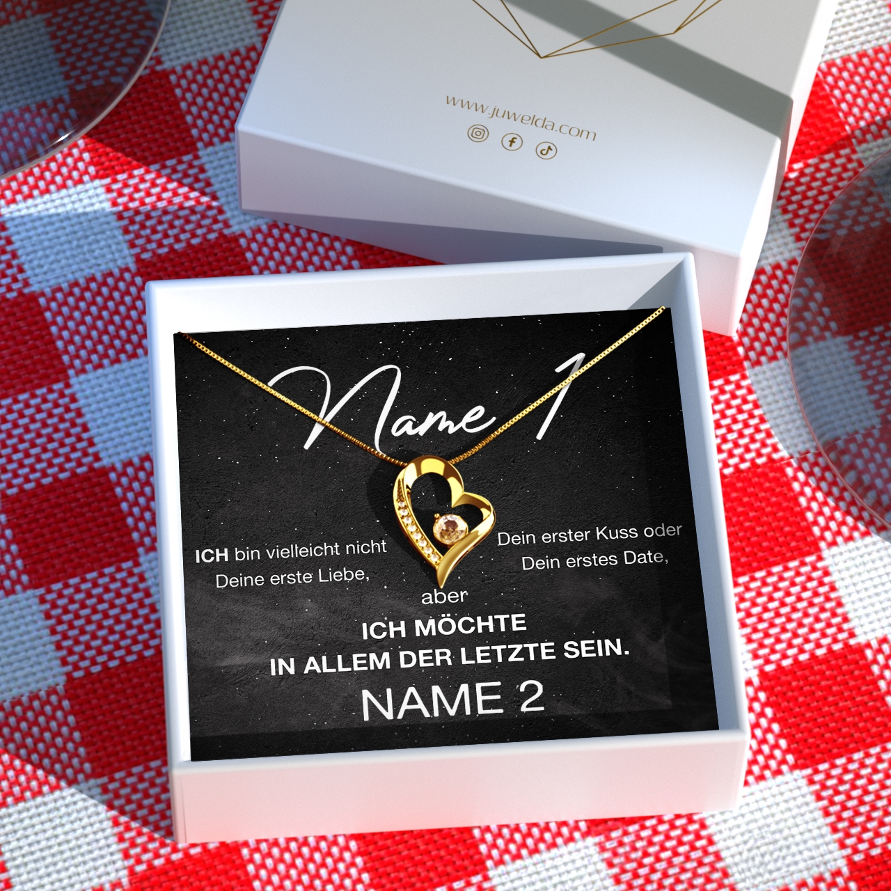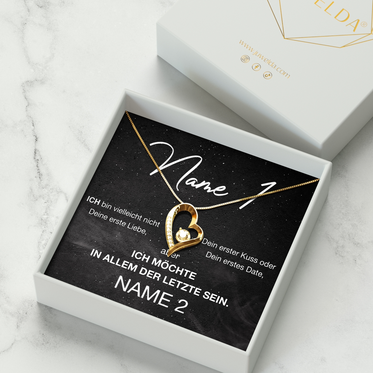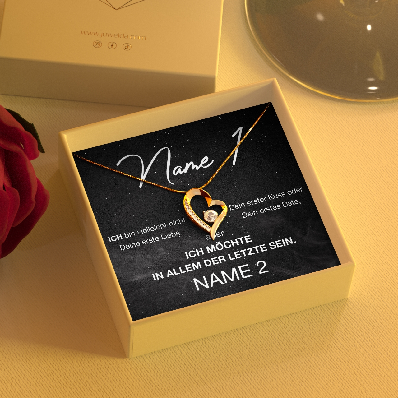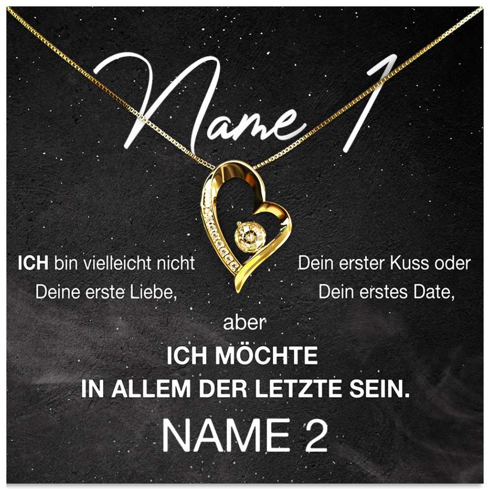 Deine Partnerin ist die wichtige Person in Deinem Leben und Du möchtest ihr sagen, wie viel sie Dir bedeutet? Dir liegt es auf der Zunge, aber doch findest Du nicht die passenden Worte, um Deine tiefste Liebe Ausdruck zu verleihen? Dann ist dieses Schmuck-Geschenk genau das Richtige für Dich! Das Kartendesign „In allem der Letzte“ zeigt das Universum, das Deine unendliche Liebe symbolisiert. Personalisiere die Karte mit dem Namen Deiner Liebsten, sodass das romantische Zitat eine ganz persönliche Bedeutung erhält. Die Kombination aus hochwertigem Schmuck und einer liebevollen Botschaft bildet die Symphonie Eurer innigen Liebe.