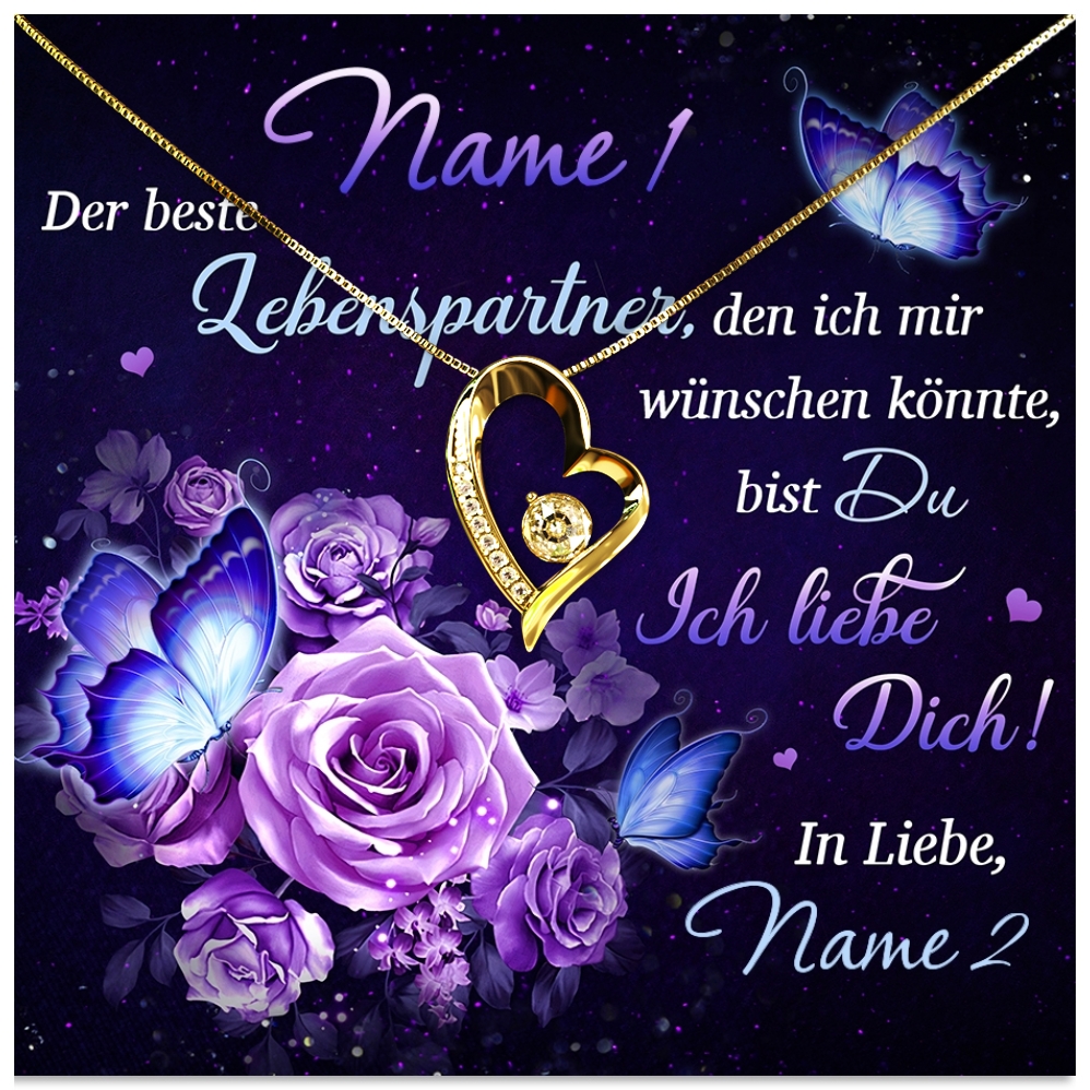 Ganz wie in einem Märchen hast Du von einer Lebenspartnerin geträumt, die Dir auf all Deinen Wegen zur Seite steht. Wie der Zufall es wollte, bist Du Deinem Schatz begegnet und jetzt bestreitet ihr jedes Hindernis zusammen. Und nun ist es an der Zeit, Dich mit einem kleinen Präsent bei Deiner Partnerin zu bedanken. Mit den wunderschönen Worten unserer personalisierbaren Karte „Märchenhafte Liebe“vermittelst Du Deiner Lebenspartnerin Deine tiefsten Gefühle. In Kombination mit einem eleganten Schmuckstück wird Dein Geschenk zu einer wahren Liebeserklärung.