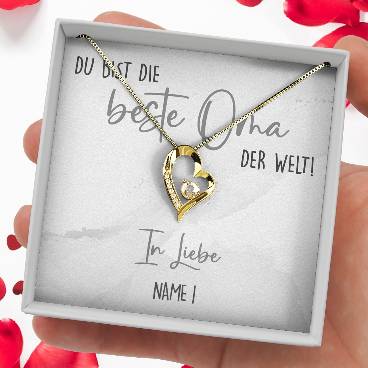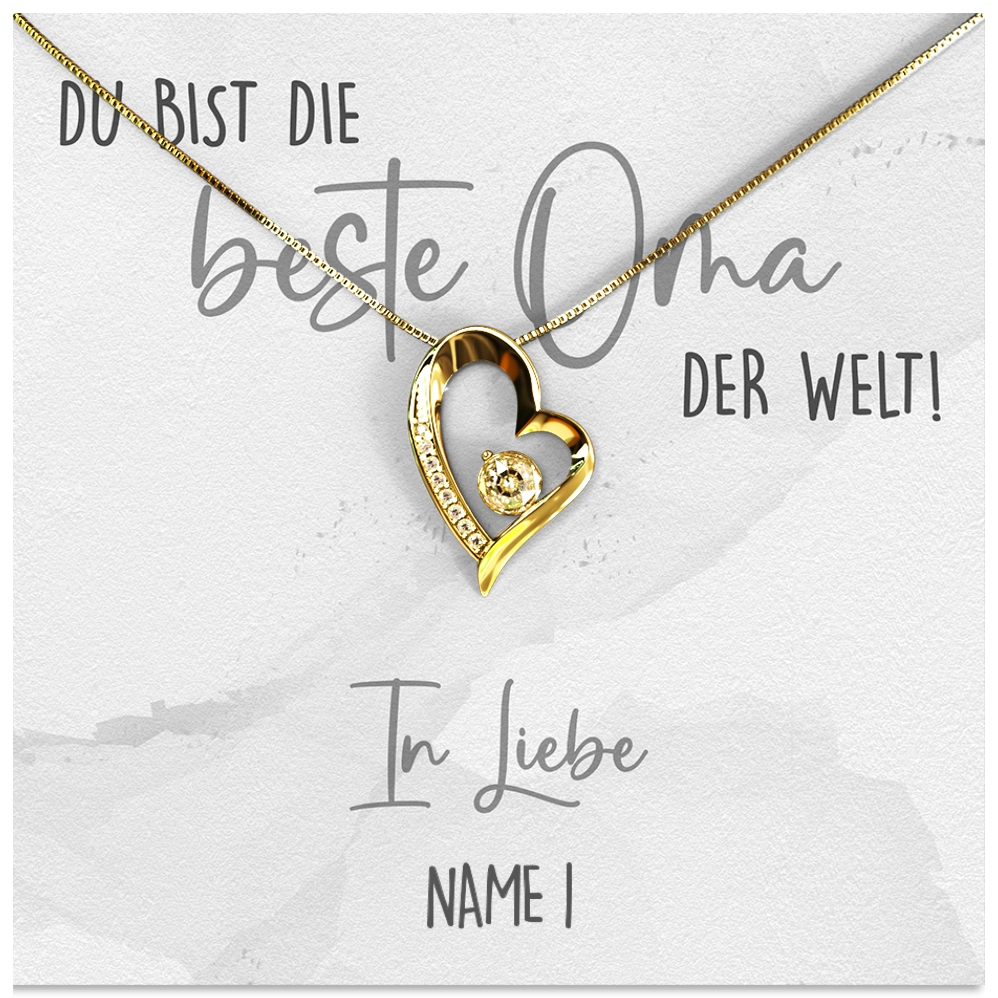 Zusammen mit der personalisierten Karte verpacken wir die Halskette aus 925 Sterling Silber mit ganz viel Liebe und von Hand in unserer kleinen Schmuckmanufaktur im Westerwald und legen Dir eine gratis Geschenktüte in Dein Paket. Somit erhältst Du ein rundum vollkommenes Geschenk, welches Du sofort an Deine Oma überreichen kannst.