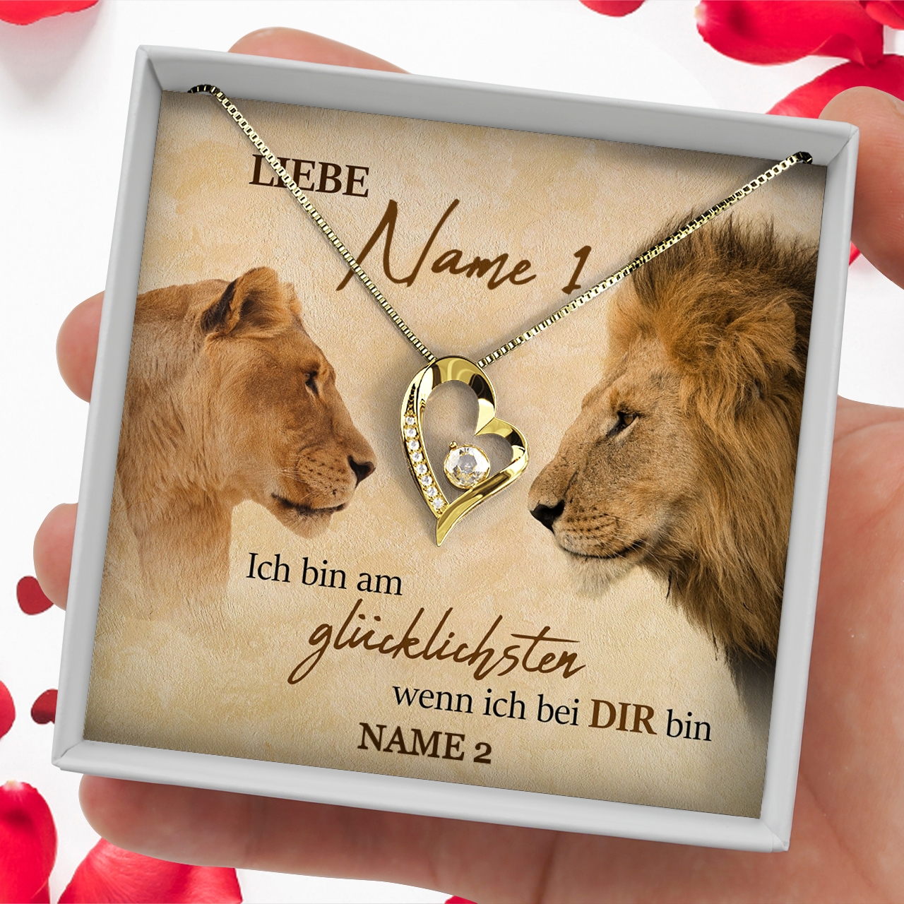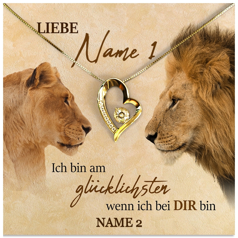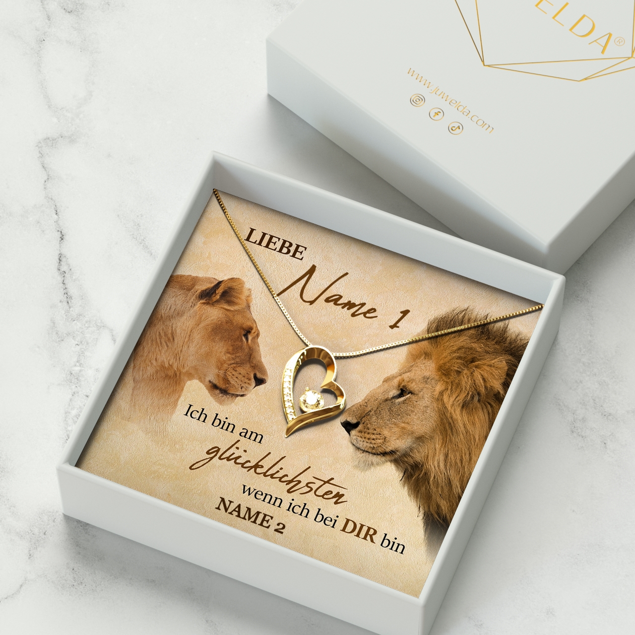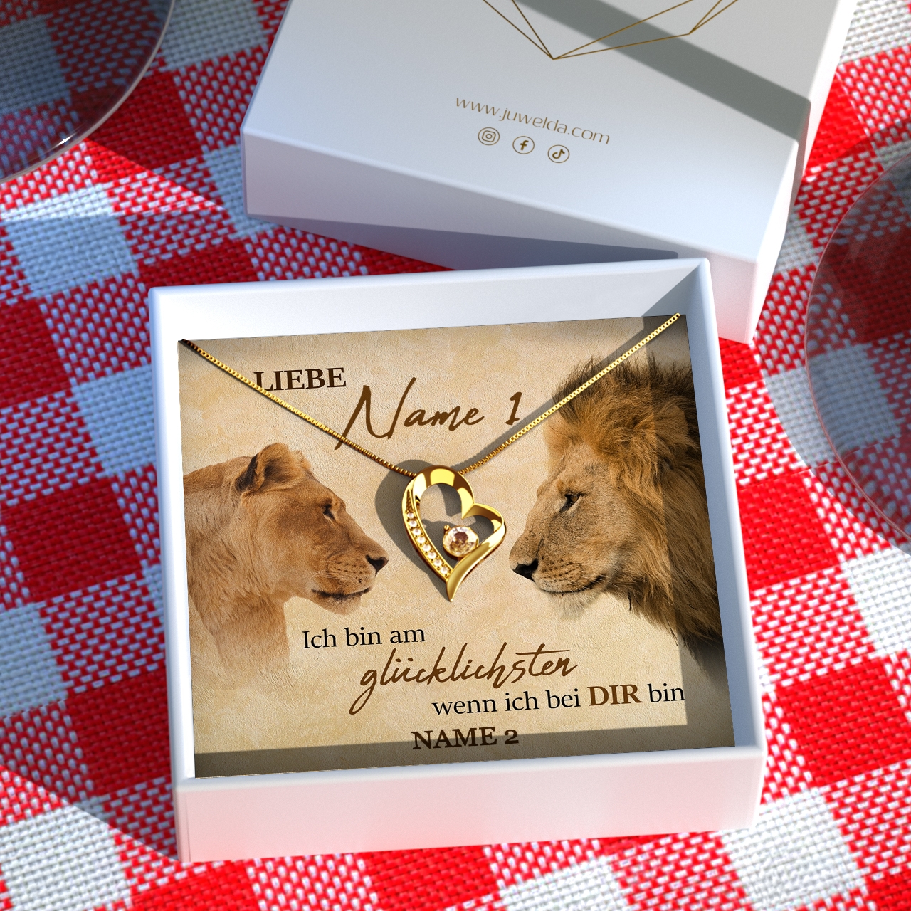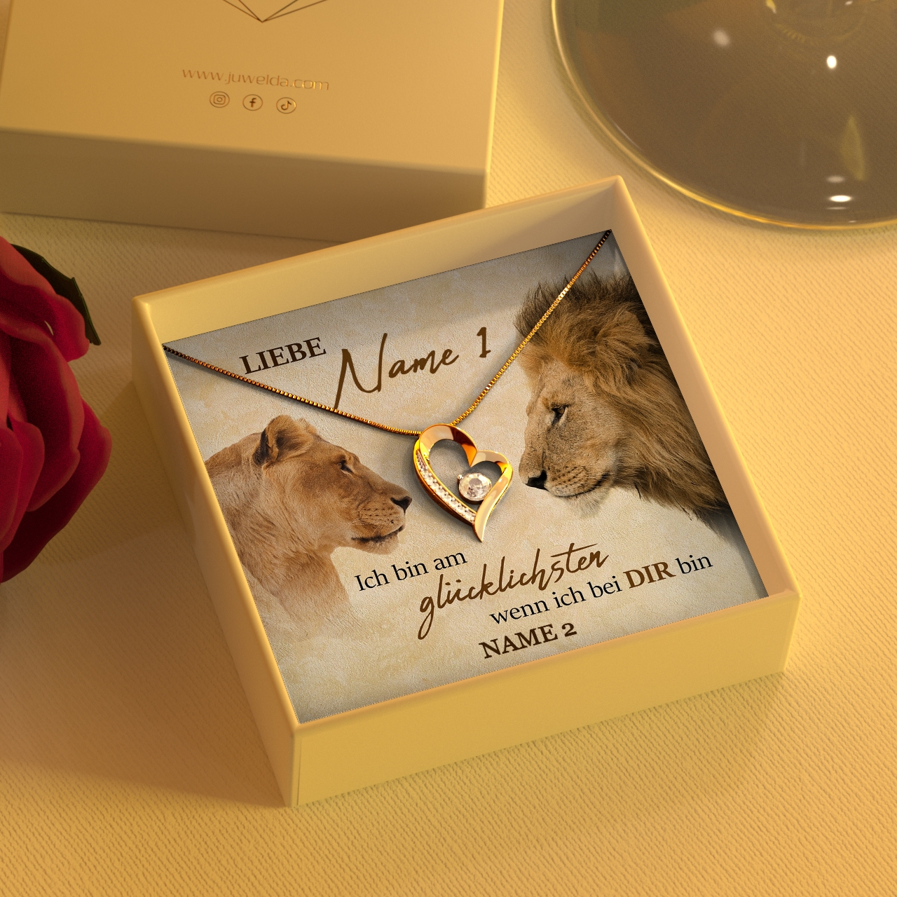 Unser Design “Löwenpaar” ist die perfekte Grußkarte für ein wunderschönes Schmuck-Geschenk mit einer ganz persönlichen Botschaft. Du und Dein Schatz seid ein starkes Paar, das gemeinsam über das eigene “Reich” herrscht? Dann ist “Löwenpaar” eine großartige Geschenkidee. Die majestätischen Löwen blicken sich tief in die Augen und beide wissen ganz genau: Wir sind füreinander gemacht!