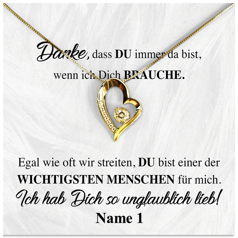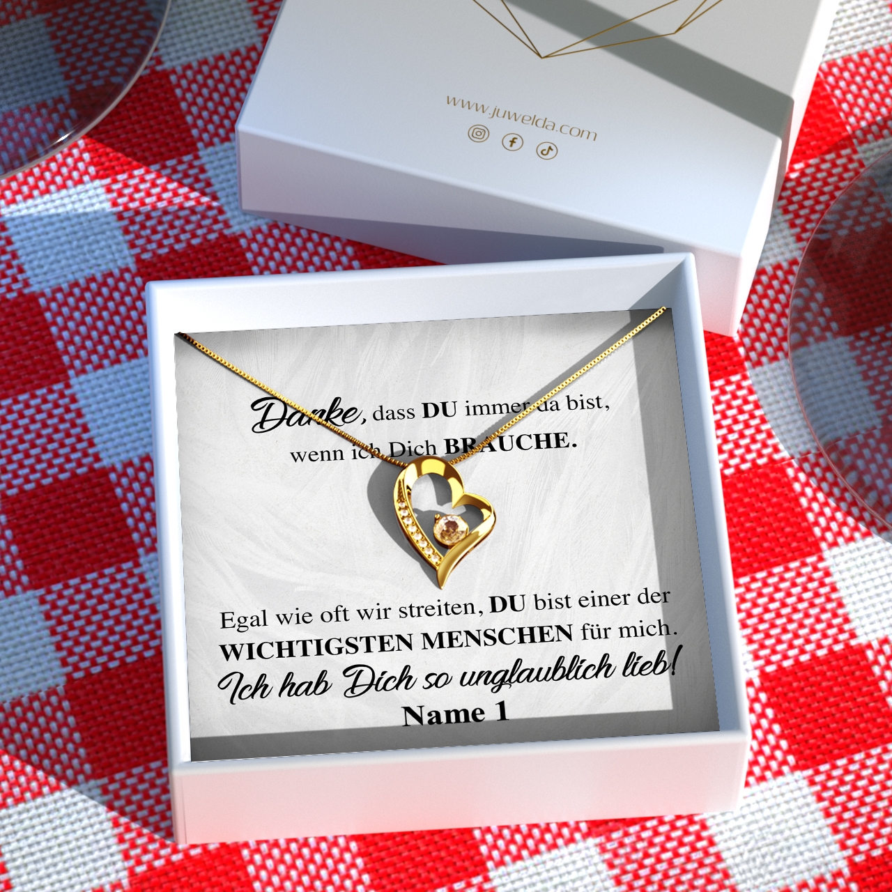Dein Paket wird in unserer Schmuckmanufaktur im Schwarzwald von Hand gepackt und wir legen zu Deiner Bestellung die funkelnde Halskette aus 925 Sterling Silber mit Deiner personalisierten Karte in eine wunderschöne Schmuckbox und verpacken alles in eine Geschenktasche. Zusammen mit dem hochwertigen Seidenpapier und der schönen Schleife kannst Du Dein persönliches Geschenk sofort an Deine Schwester überreichen.