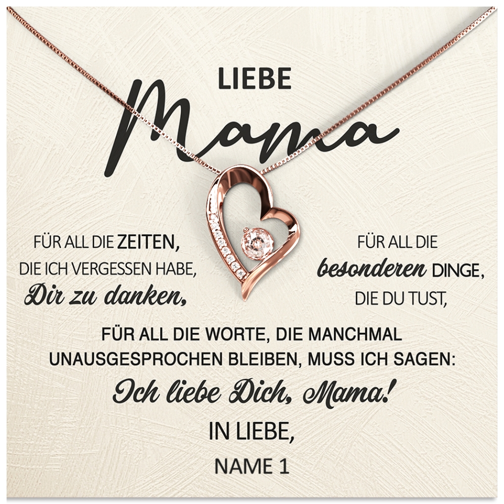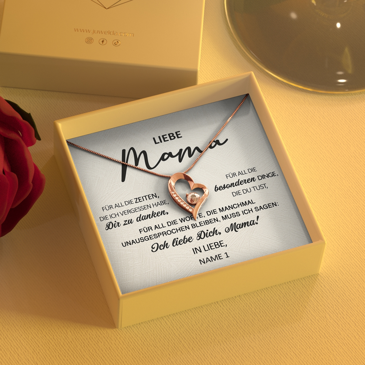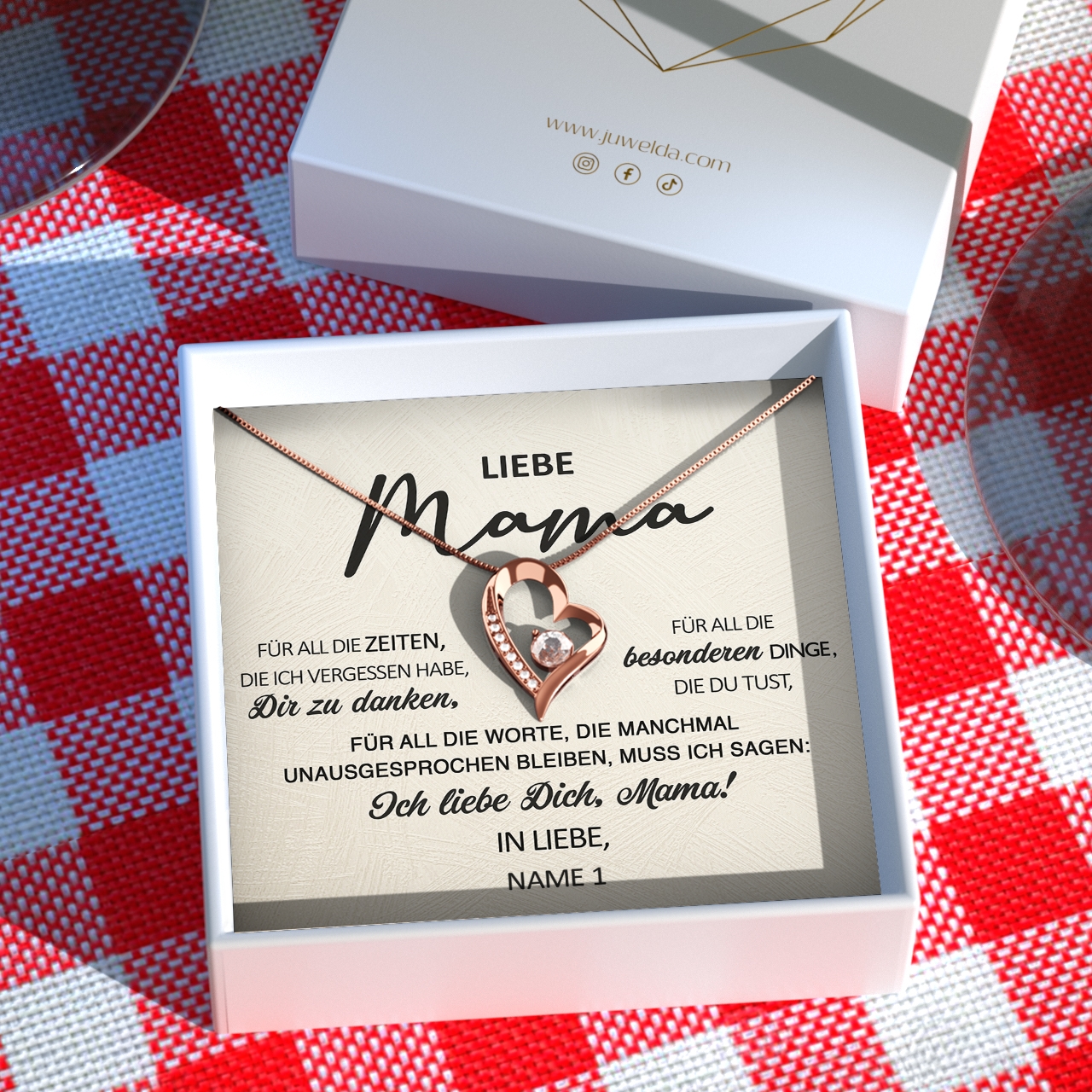 Deine Mama bedeutet Dir sehr viel und Du weißt nicht, wie Du Dich bei Ihr bedanken kannst? Mit einem persönlichen Geschenk von Juwelda wirst Du Deiner Mama ganz bestimmt ein Lächeln ins Gesicht zaubern. Wähle Dein Schmuckstück, such Dir ein Motiv Deiner Wahl aus und trage Deine Wunschnamen in das Personalisierungsfeld ein. Mit der Live-Vorschau kannst Du das Geschenk für Deine Mama ansehen und Änderungen vornehmen. Sobald Du mit Deiner Wahl zufrieden bist und Dein perfektes Geschenk gekauft hast, beginnen wir mit der Arbeit.