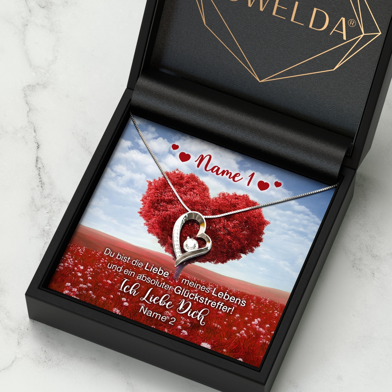 Ganz unverhofft hast Du die Liebe Deines Lebens gefunden. Ganz gleich, ob es ein lauer Sommerabend im Park oder auf einer Feier mit Freunden war – dieser Tag war mit Abstand der beste in Deinem Leben. Wenn Du Deinen Schatz überraschen und ihr zeigen möchtest, was für ein Glück Du mit ihr hast, dann kannst Du dies mit einem edlen Schmuckstück Deiner Wahl und unserer Karte „Liebe des Lebens“ tun. Stell Dir das Gesicht Deines Lieblings vor, wenn Du ihr eine hochwertige Schmuckbox mit dem funkelnden Geschenk und einer Karte mit Deiner persönlichen Liebesnachricht übergibst.