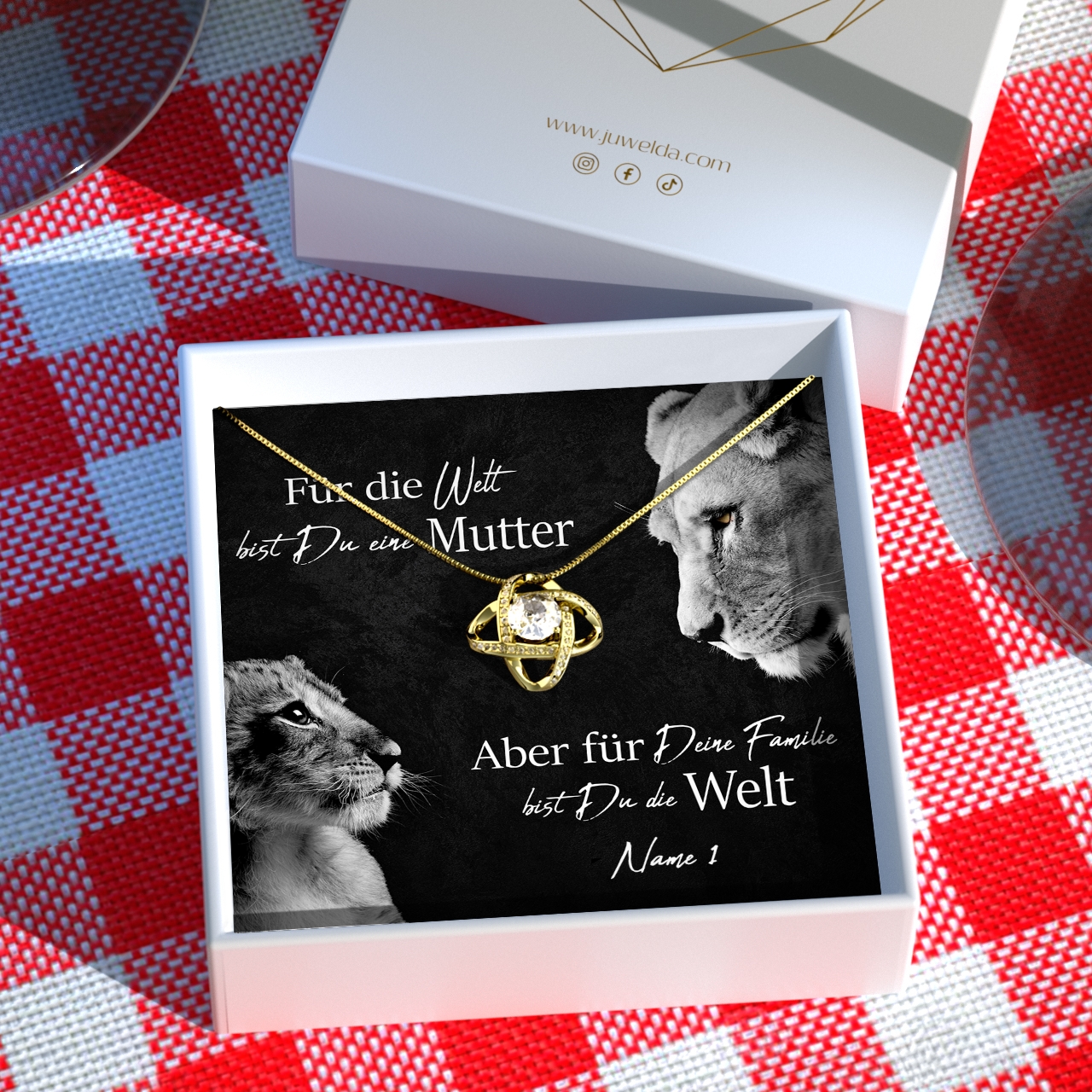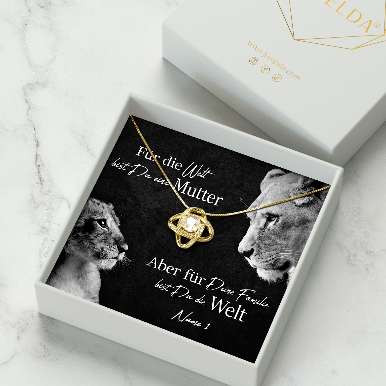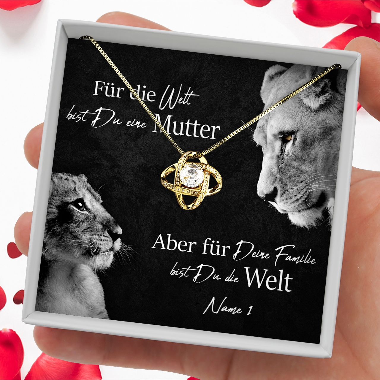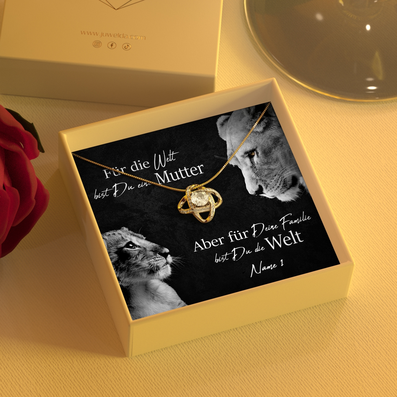 Du hast das Glück, eine Mama zu haben, die immer für Dich da ist und Dir die Sterne vom Himmel holt? Dann sag Danke und beschenke Sie mit einem Präsent, das nur für sie gemacht ist. In unserer Schmuckkollektion kannst Du einen kleinen Schatz finden, der die Augen Deiner Mutter zum Leuchten bringen wird. Mit der personalisierbaren Karte „Löwenmama“ findest Du die richtigen Worte, um Danke zu sagen. Das schöne Design mit der Löwenmutter und ihrem Kind ist ein kraftvolles Symbol für Eure spezielle Bindung.