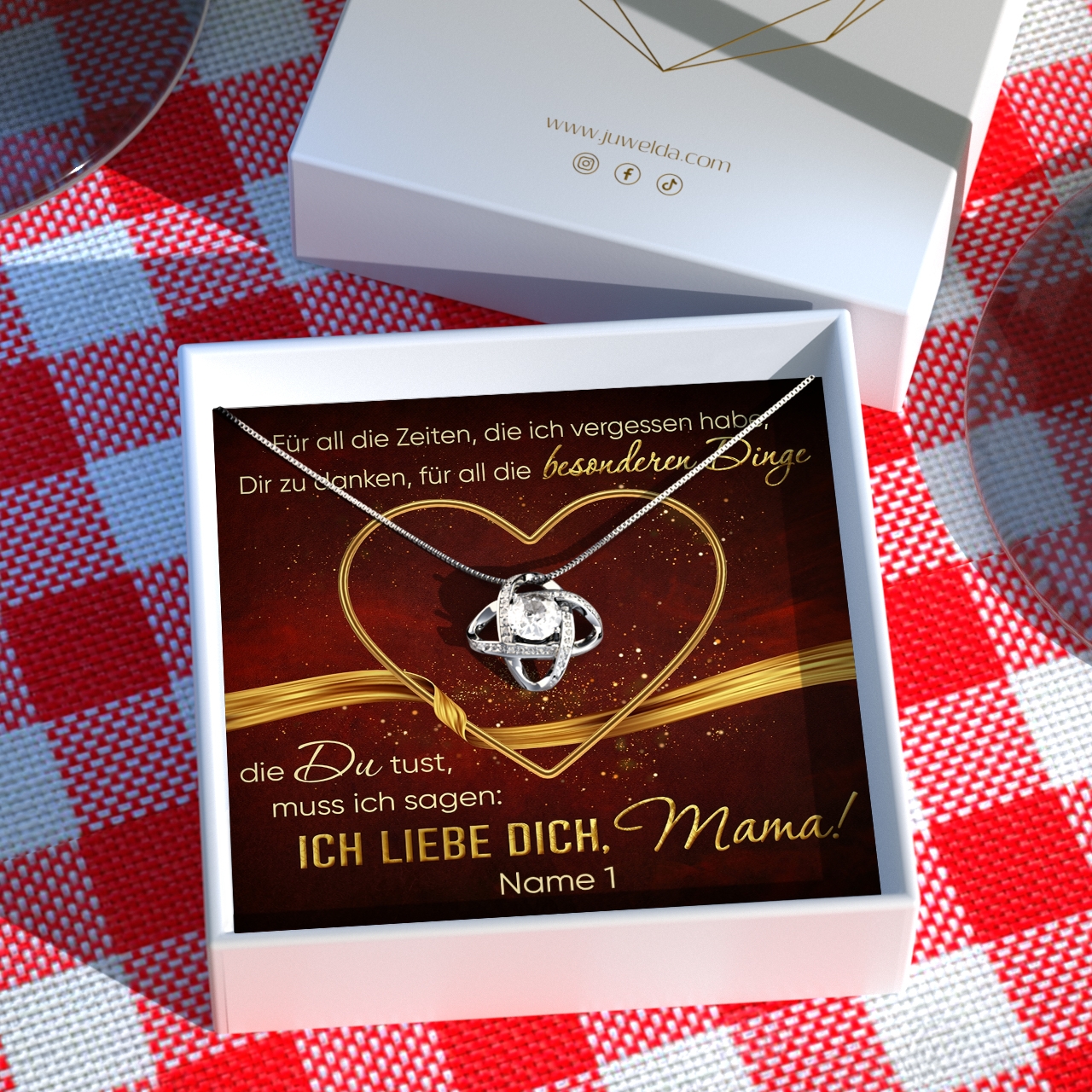 Mama hat einen ganz besonderen Platz in Deinem Herzen? Nun möchtest Du ihr endlich ein Präsent überreichen, das ihr zeigt, wie viel sie Dir bedeutet? Unsere Schmuckgeschenke mit personalisierter Grußkarte sind dafür genau passend. Denn die hübschen Schmuckstücke werden auf eleganten Karten wie dieser präsentiert. Mit nur wenigen Klicks kannst Du das Design mit einem oder mehreren Namen anpassen. Gestalte so einfach selbst ein Geschenk, das Deine Mama zu Tränen rühren wird.