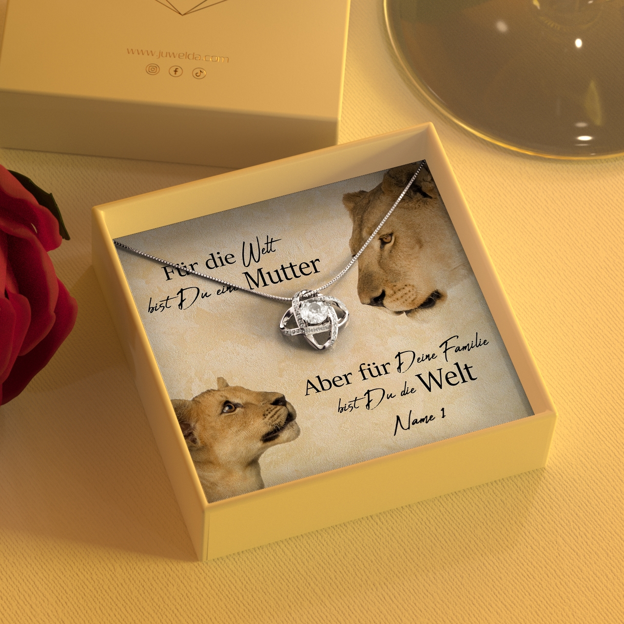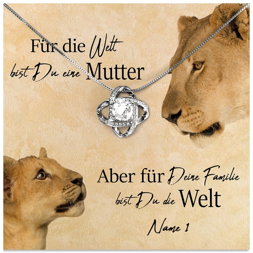 Deine Mutter ist immer an Deiner Seite? Sie ist Deine beste Freundin, Beschützerin und größte Unterstützerin zugleich? Mit unserer personalisierbaren Karte „Löwenmutter“ kannst Du dafür Danke sagen. Als Teil eines einmaligen Geschenksets ist die Karte der perfekte Weg, um Deinen Gefühlen Ausdruck zu verleihen – denn wir sagen unseren Müttern viel zu selten, wie wichtig sie für uns sind. Wähle ein Schmuckstück, das zu Deiner Mama passt und präsentiere es mit der Karte, die Deinen Namen zeigt.