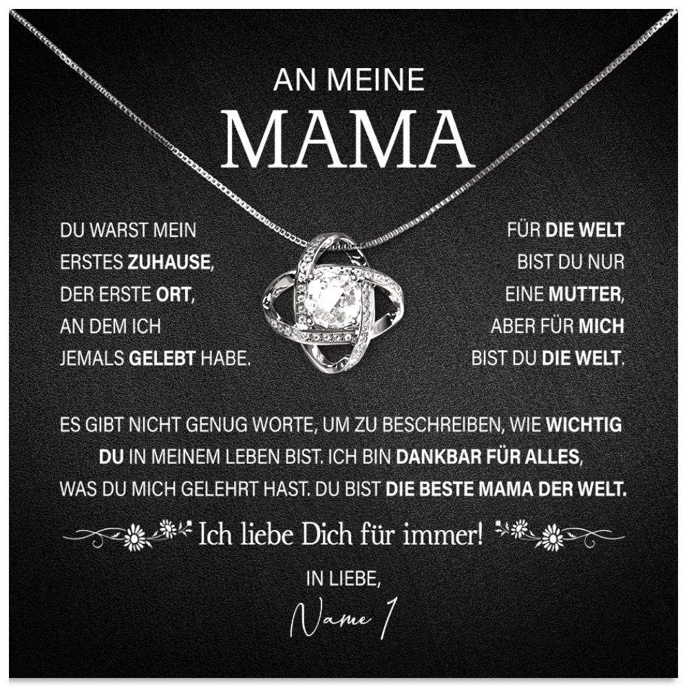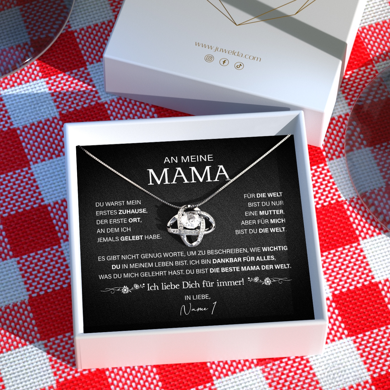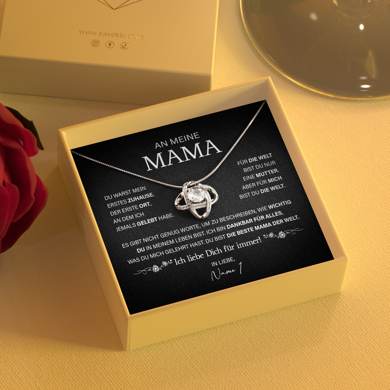 Du möchtest Dich bei Deiner Mutter für all Ihre guten Taten bedanken und weißt nicht wie? Mit einem Geschenk von Juwelda drückst Du genau das aus, wofür Dir die Worte fehlen. Unsere personalisierte Karte „Mein Zuhause“ eignet sich perfekt dafür! Du hast die Wahl zwischen drei unterschiedlichen Sprüchen, mit denen Du Deiner Mama genau das sagen kannst, was Dir schon lange auf dem Herzen liegt. Zusätzlich hast Du die Möglichkeit, Deine Karte zu personalisieren. Du musst nur Deine Wunschnamen eingeben und kannst das Ergebnis in der Live-Vorschau bestaunen.