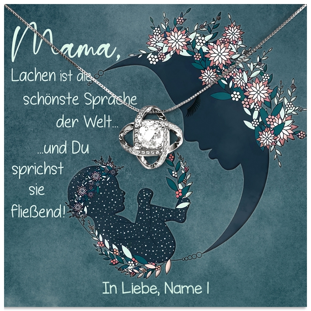 Deine Mama ist einfach der wunderbarste Mensch? Du möchtest Dich endlich dafür bedanken, dass sie immer an Deiner Seite ist und sich in guten wie schlechten Zeiten um Dich kümmert? Finde in unserem Schmucksortiment ein Juwel, welches ein Leuchten in die Augen Deiner Mama zaubern wird. Anschließend kannst Du die Karte „Schönste Sprache der Welt“ mit Deinem Namen personalisieren und das Set voller Freude überreichen. Wenn Ihr mehrere Geschwister seid, ist auch Platz für weitere Namen auf der Karte. In der Live-Vorschau kannst Du sehen, wie das finale Produkt aussehen wird.