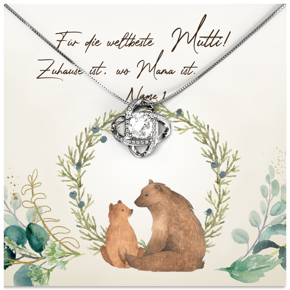Mütter nehmen einen ganz besonderen Platz im Herzen ihrer Kinder ein. Denn die Bindung zwischen Mutter und Kind ist unzerbrechlich. Wenn es an der Zeit ist, Dich bei Deiner Mama zu bedanken, dann haben wir genau das Richtige für Dich. Unsere Schmuck-Geschenke sind ein wunderbar persönlicher Weg, um Deiner Mama zu zeigen, was Sie Dir bedeutet. Wähle ein schönes Schmuckstück aus unserer Kollektion und personalisiere die „Weltbeste Mutti“ Grußkarte mit Deinem Namen.