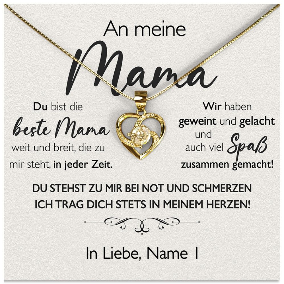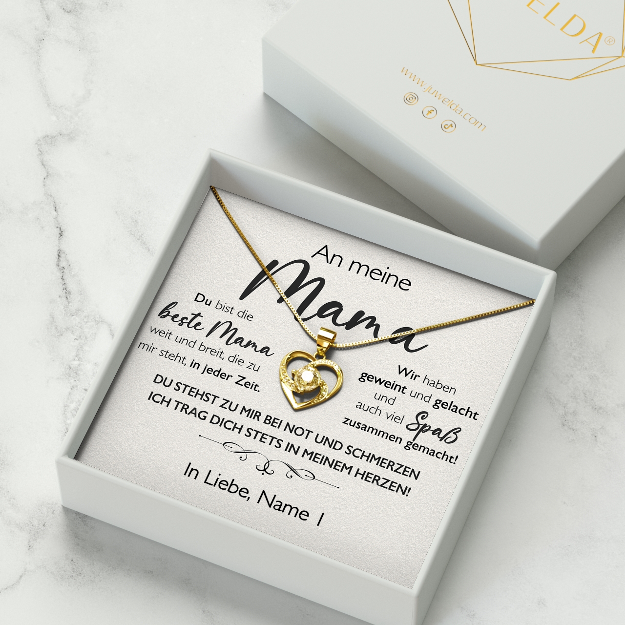 Mama ist die Person, die Dir in schlechten Zeiten den Rücken stärkt und in guten Zeiten Deine Erfolge mit Dir teilt. Sie bringt Dich zum Lachen und trocknet Deine Tränen. Egal wie tief Du fällst, mit der Hilfe von Mama stehst Du immer wieder auf. Für all die Zeiten, in denen Deine Mutter für Dich da war und für all die Zeiten, in denen Deine Mutter für Dich da sein wird, kannst Du Dich jetzt mit einer schönen Halskette aus 925 Sterling Silber und einer personalisierten Karte bedanken.