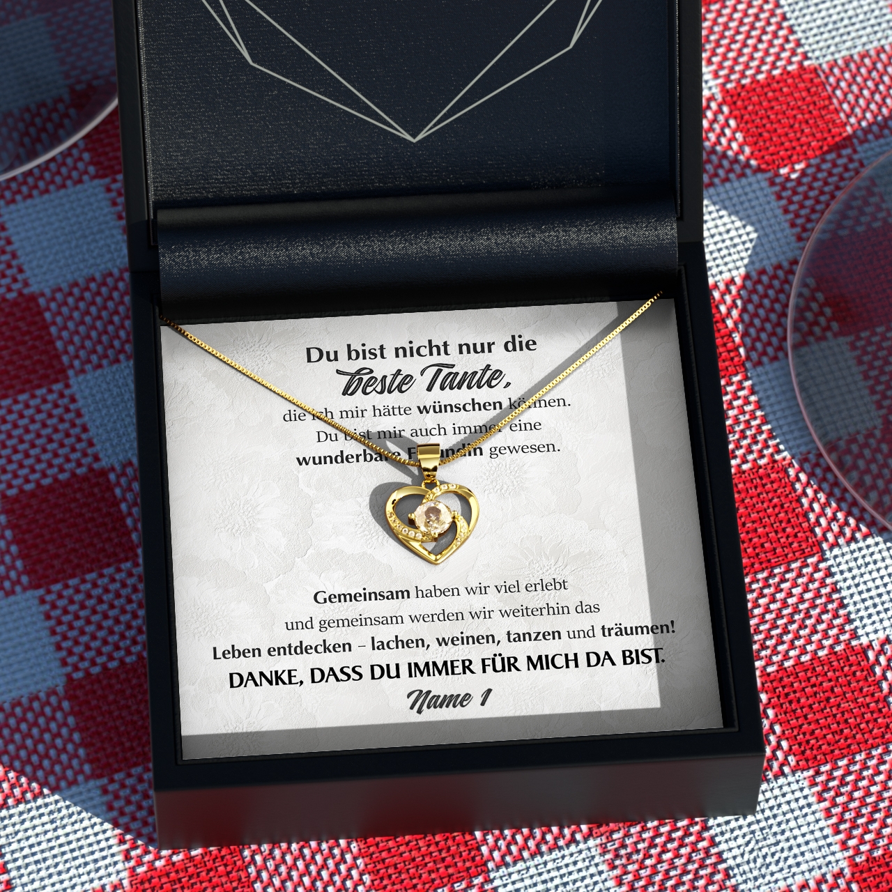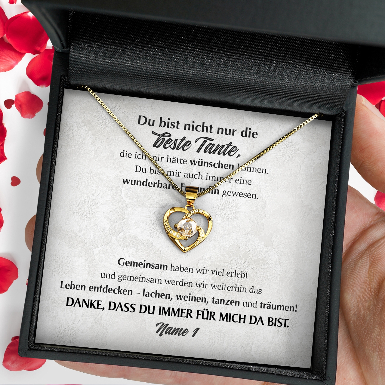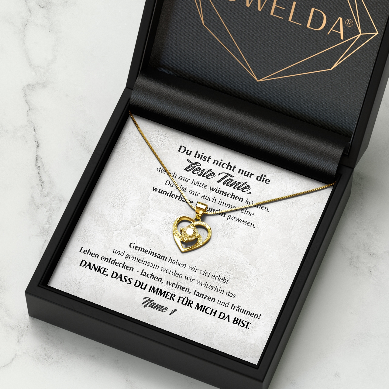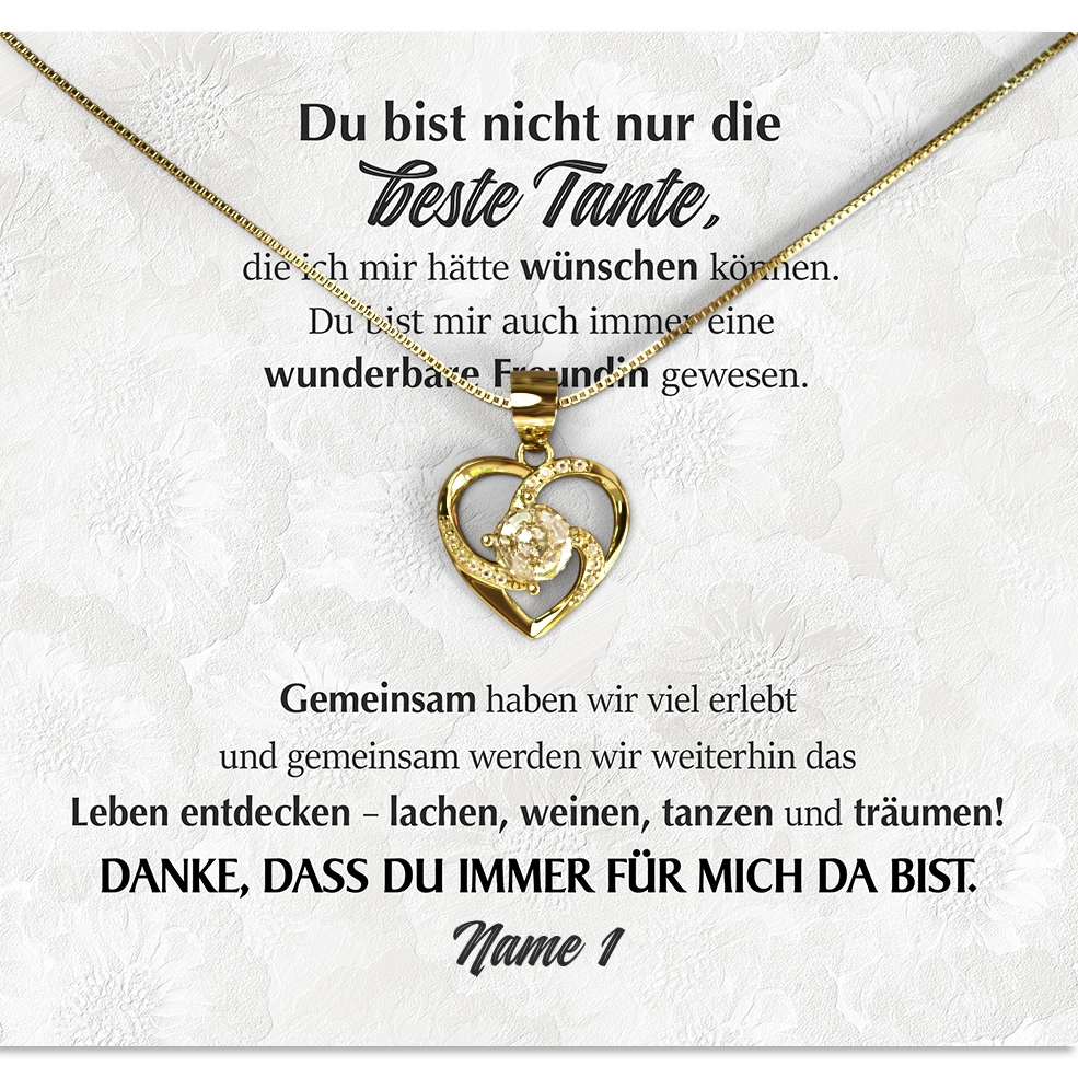 Dieser wunderschöne Schmuck ist das perfekte Geschenk für Deine Tante. Die Halskette aus 925 Sterling Silber ist in einer schönen Schmuckbox verpackt. Die Kette ist 45 cm lang und in Silber, Gelbgold oder Roségold erhältlich. Sie kann zu jedem Anlass getragen werden, ist antiallergisch und für empfindliche Haut geeignet.