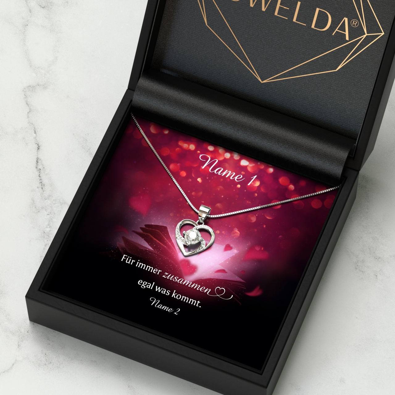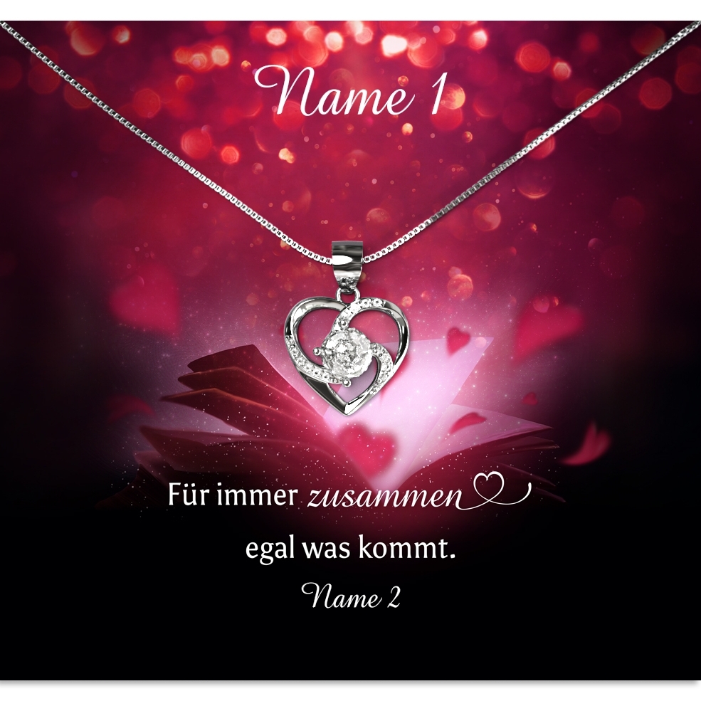 Du und Deine große Liebe feiert ein weiteres gemeinsames Jahr? Du kannst Dir nicht mehr vorstellen, wie das Leben ohne sie sein sollte? Fasse dieses Gefühl in Worte mit dieser personalisierbaren Grußkarte. Das romantische Design mit den glitzernden Herzen wird das von Dir selektierte Schmuckstück perfekt in Szene setzen. Du kannst mir nur ein paar Klicks das Set zusammenstellen und die Grußkarte mit Euren Namen personalisieren.