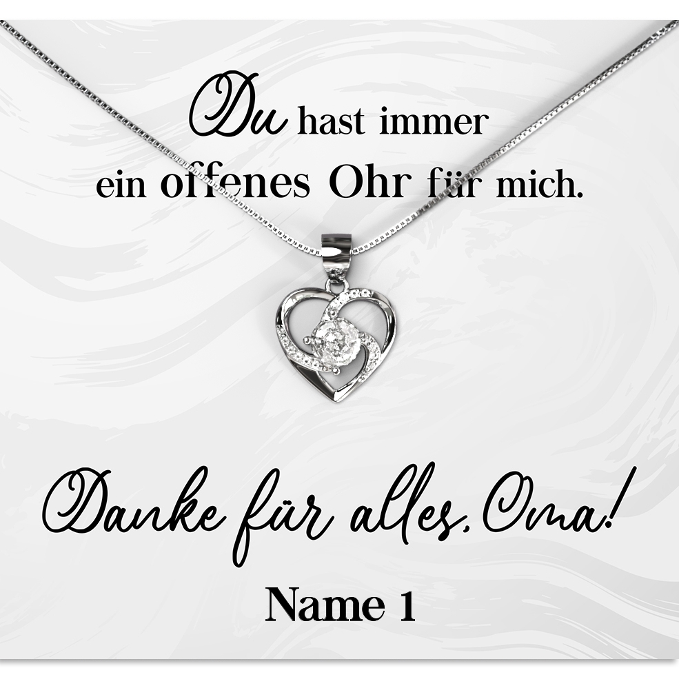 Die funkelnde Halskette aus 925 Sterling Silber kann Deiner Oma nur gefallen und mit der mitgelieferten Geschenkverpackung kannst Du nichts mehr falsch machen. Bereite Deiner Großmutter einen schönen Tag, egal ob zu Weihnachten, zum Geburtstag oder einfach als Geschenk für zwischendurch. Mit diesem Präsent wirst Du definitiv für Freudentränen sorgen und das Herz Deiner Oma höherschlagen lassen.